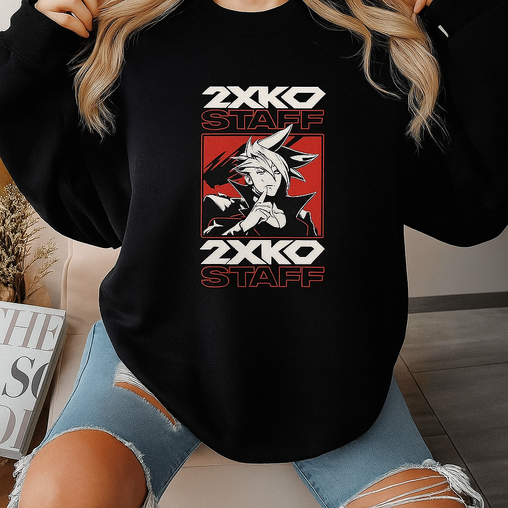 Step into the world of 2XKO with the 2XKO Staff Shirt, a must-have for fans who appreciate a perfect balance of fashion, fandom, and comfort. Featuring a striking, anime-styled character graphic with the iconic “2XKO STAFF” logo, this t-shirt is more than just apparel – it’s a statement of loyalty and individuality.