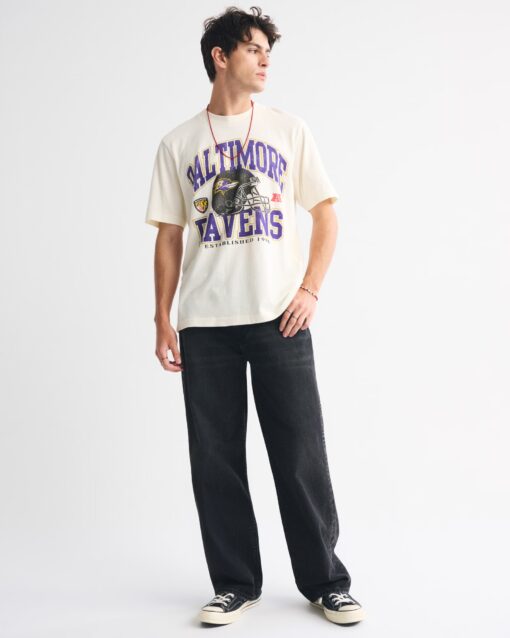 Show your Ravens pride in this vintage-inspired graphic tee, made from premium cotton with a relaxed fit and bold front graphic celebrating Baltimore’s football legacy.