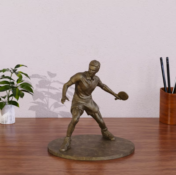 Bring the spirit of table tennis into your space with this Bronze Color 3D Table Tennis Figurine Collection, crafted from high-quality resin with a stunning bronzed finish. Each sculpture captures lifelike moments of the game—from intense serves to powerful returns—making them the perfect decorative art pieces for enthusiasts and collectors alike.
