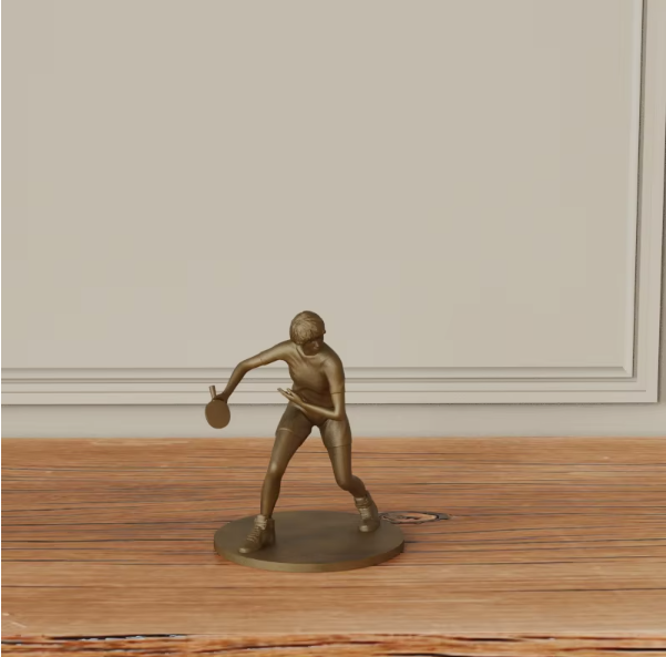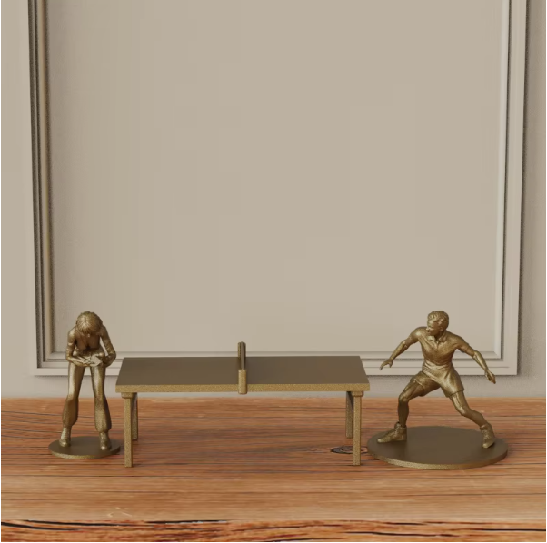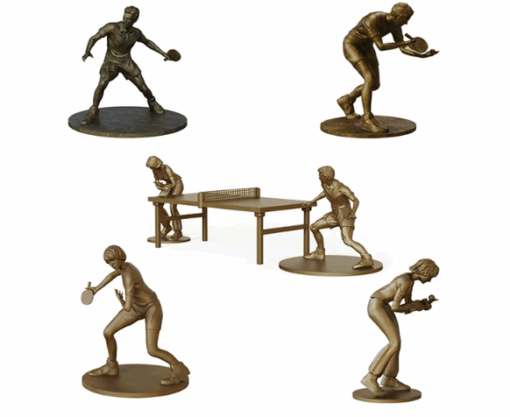 A premium collection of bronze-colored 3D table tennis figurines made from high-quality resin. Featuring lifelike player poses and a mini ping pong table, perfect for interior decoration, sports-themed displays, or collectible gifts.