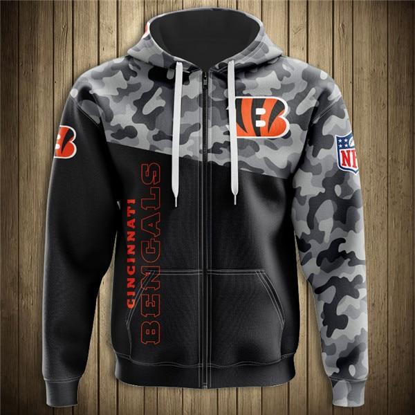 Cincinnati Bengals Half Camo 3D Zipper Hoodie Jacket