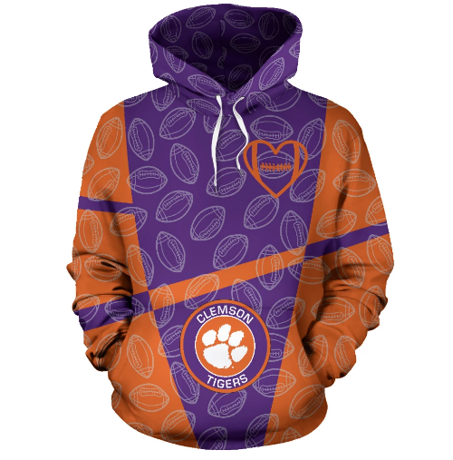 Clemson Tigers Heart In Chest 3D Pullover Hoodie