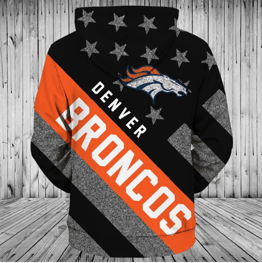 Denver Broncos Black With Multi Star 3D Zipper Hoodie Jacket