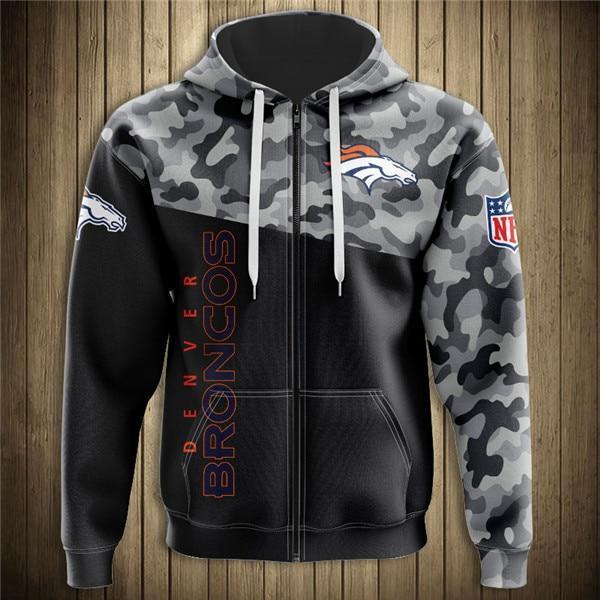 Denver Broncos Half Camo 3D Zipper Hoodie Jacket