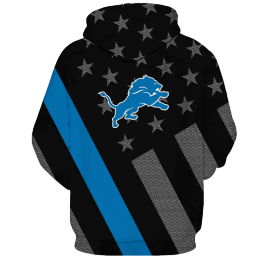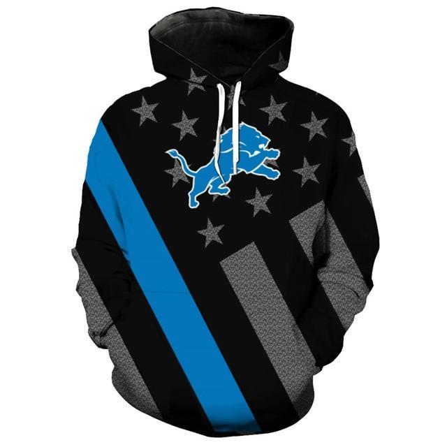 Detroit Lions Black With Multi Star 3D Pullover Hoodie