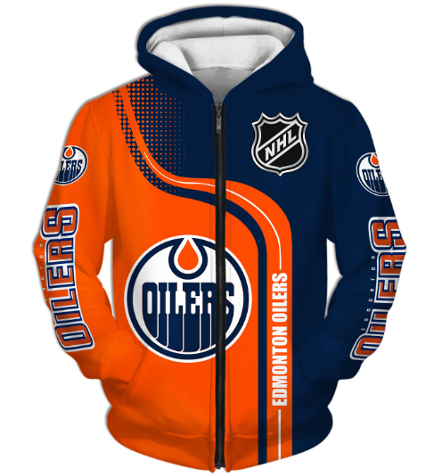 Edmonton Oilers Half Color 3D Printed Zipper Hoodie Jacket