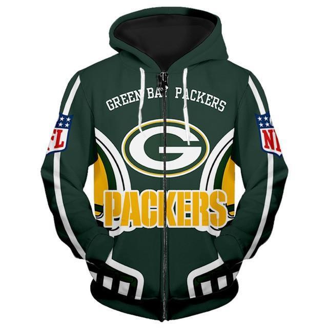 Green Bay Packers Solid Color 3D Zipper Hoodie Jacket