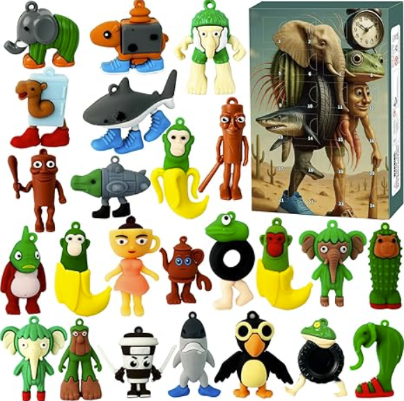 Complete Set of 24 Unique Figures: Features mini Italian Brainrot characters with quirky and adorable designs such as Tralalero Tralala, Tung Tung Tung Sahur, Brr Brr Patapim, Bombardiro Crocodilo, La Vacca Saturnosaturnita, Globo Frutto Drillo, Trulimerotrulicina and more. Each day brings a new festive surprise.