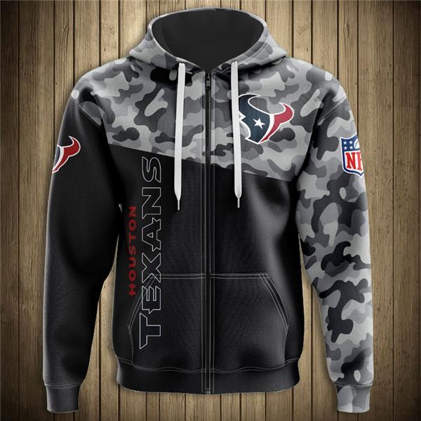 Houston Texans Half Camo 3D Zipper Hoodie Jacket