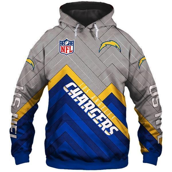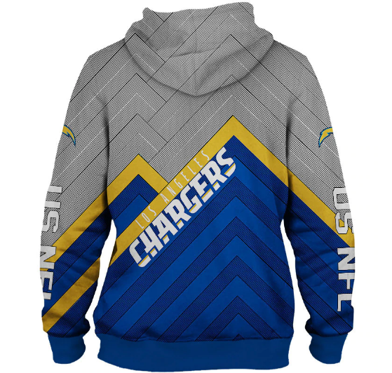 Los Angeles Chargers 3D Logo Name Printed Pullover Hoodie