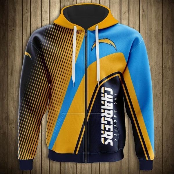 Los Angeles Chargers Hooded Matching Stripe 3D Zipper Hoodie Jacket