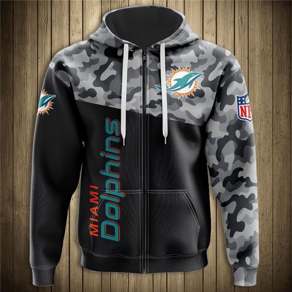 Miami Dolphins Half Camo 3D Zipper Hoodie Jacket