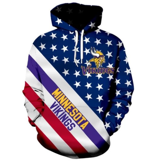 Minnesota Vikings American Flag 3D Printed Pullover Hoodie