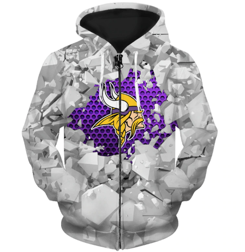 Minnesota Vikings Beehives Pattern 3D Zipper Hoodie Jacket