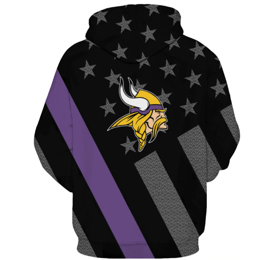 Minnesota Vikings Black With Multi Star 3D Pullover Hoodie