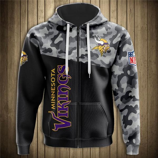 Minnesota Vikings Half Camo 3D Zipper Hoodie Jacket