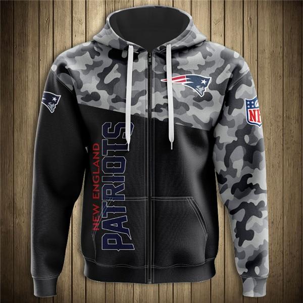 New England Patriots Half Camo 3D Zipper Hoodie Jacket