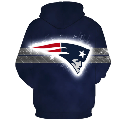 New England Patriots Blue With Logo 3D Printed Pullover Hoodie
