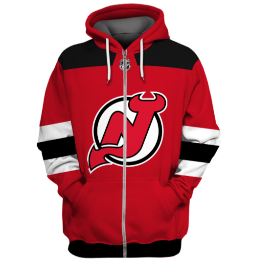New Jersey Devils Symbol Red 3D Zipper Hoodie Jacket