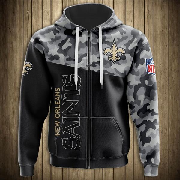 New Orleans Saints Half Camo 3D Zipper Hoodie Jacket