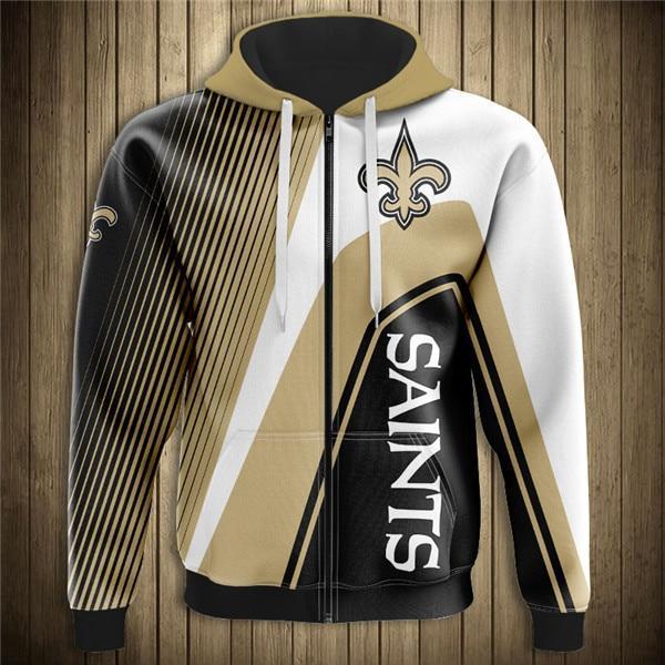 New Orleans Saints Hooded Matching Stripe 3D Zipper Hoodie Jacket