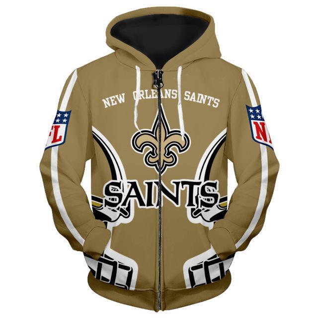 New Orleans Saints Solid Color 3D Zipper Hoodie Jacket