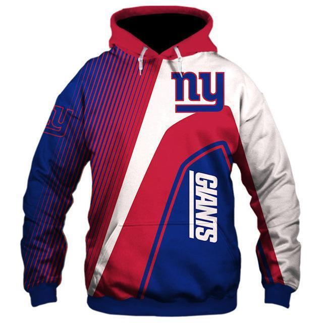 New York Giants Hooded Matching Stripe 3D Pullover Hoodie