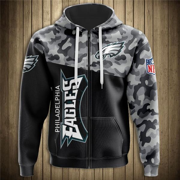 Philadelphia Eagles Half Camo 3D Zipper Hoodie Jacket