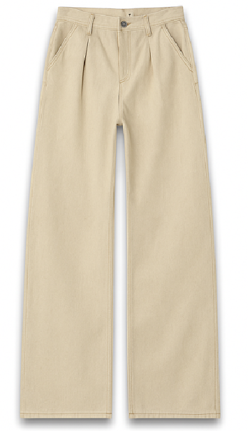 These wide-leg pleated denim jeans in a timeless beige shade are crafted from high-quality, durable denim that offers both comfort and structure. Featuring a relaxed silhouette with clean tailoring and subtle pleat details, they bring a polished yet effortless vibe to any outfit, making them a versatile piece for both casual and elevated looks.