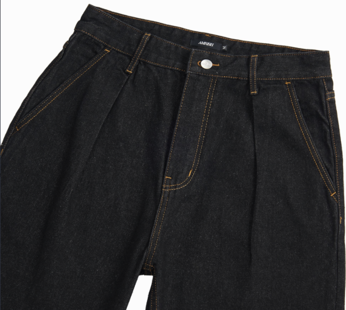 Pleated Detailing: Subtle front pleats add depth and refinement, giving the jeans a tailored edge.