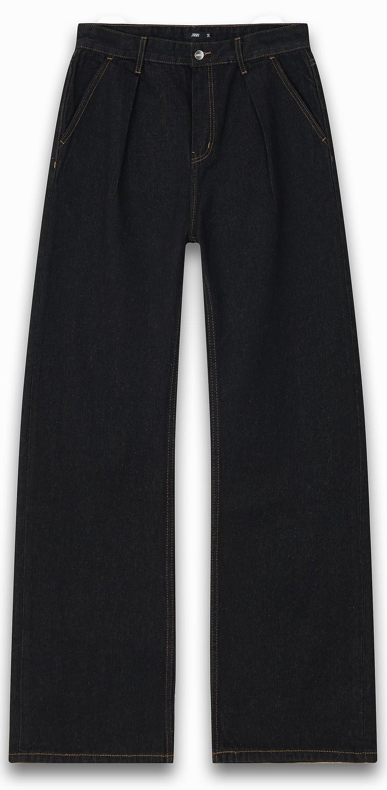 PLEATED WIDE-LEG DENIM JEANS – BLACK & BEIGE