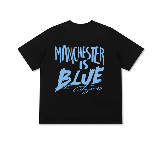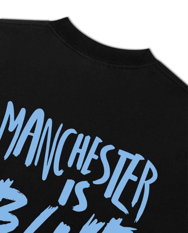 Relaxed Fit Soccer T-Shirt Manchester is Blue – loose fit design for all-day comfort, sharp digital print, premium Cotton & Polyester fabric that is soft, breathable, and long-lasting. Easy to style, colorfast, and durable.
