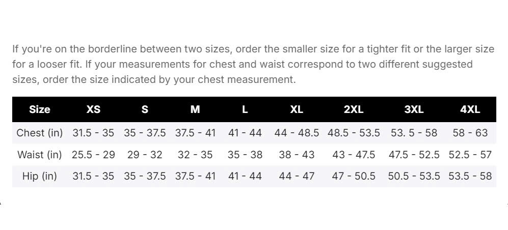 Size | XS, S, M, L, XL, 2XL, 3XL, 4XL |