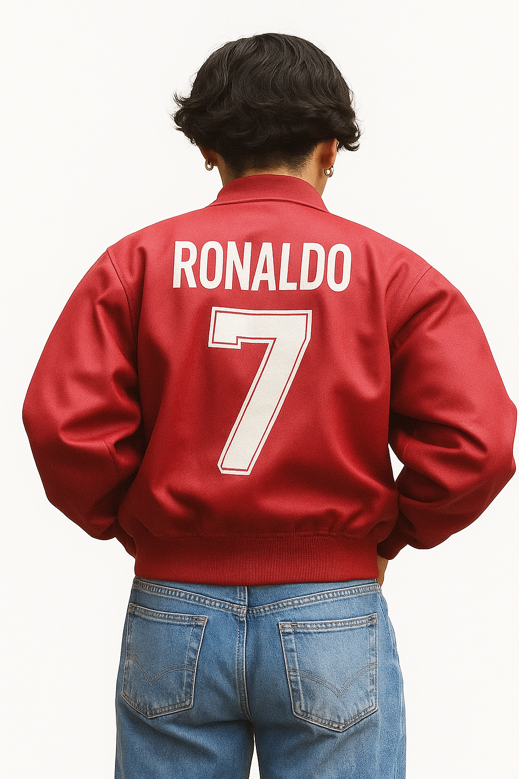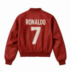 The Ronaldo 7 Red Varsity Jacket is made for collectors, football fans, and style-conscious individuals who want to express their admiration for a sporting icon while maintaining a refined everyday wardrobe. It’s equally suited for the supporter looking to display team pride and the fashion buyer seeking a standout outer layer.