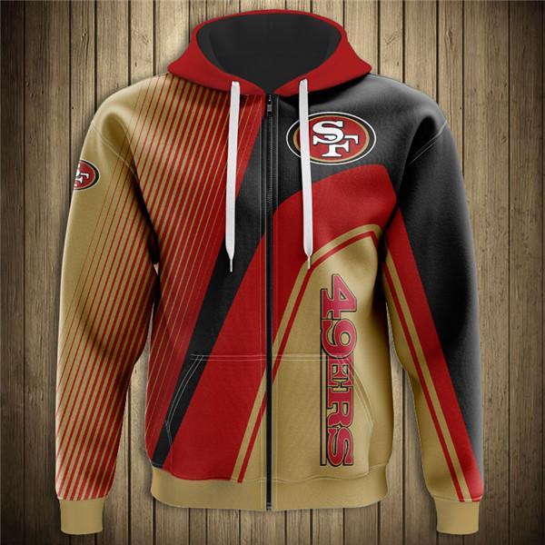 San Francisco 49ers Hooded Matching Stripe 3D Zipper Hoodie Jacket