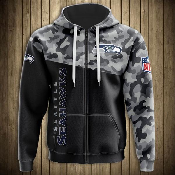 Seattle Seahawks Half Camo 3D Zipper Hoodie Jacket