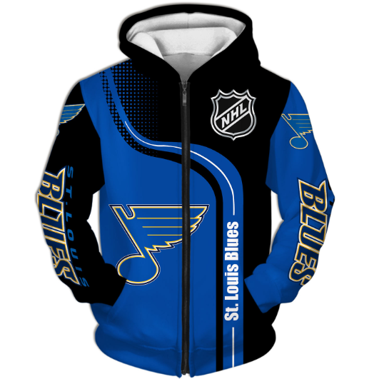 St. Louis Blues Half Color 3D Printed Zipper Hoodie Jacket
