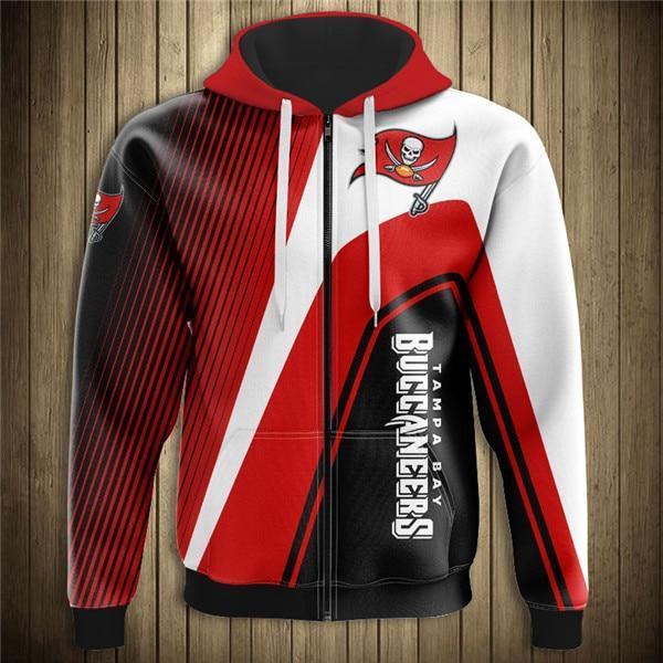 Tampa Bay Buccaneers Hooded Matching Stripe 3D Zipper Hoodie Jacket