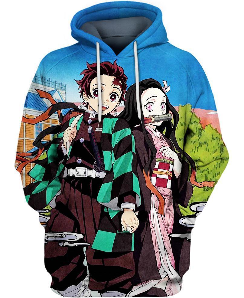 Tanjiro x Nezuko – Demon Slayer – Kimetsu No Yaiba 3D Pullover Hoodie V3