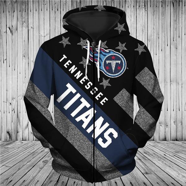 Tennessee Titans Black With Multi Star 3D Zipper Hoodie Jacket