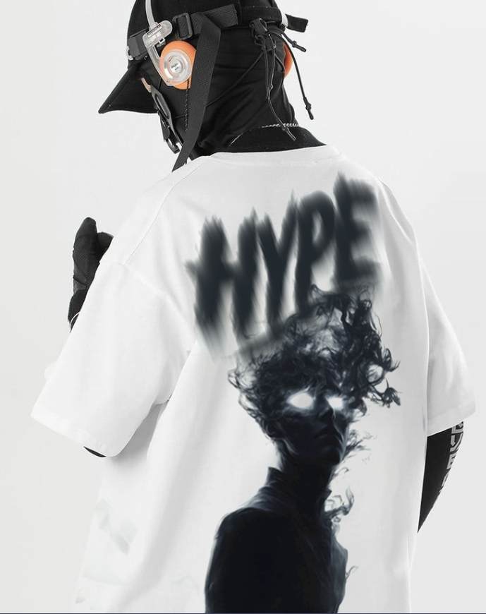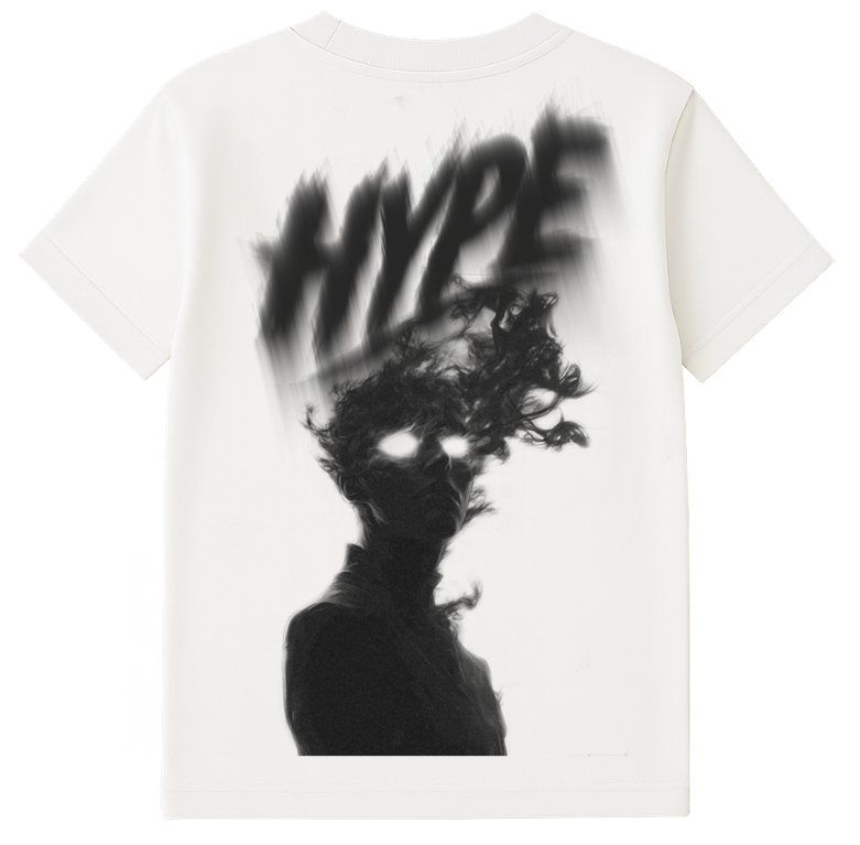 The Underrated x Hype Oversized Graphic Tee – Drop 01 is more than just a shirt — it’s a statement. The front features the bold “UNDERRATED” print with a Distressed Bleed Text Effect, symbolizing hidden power waiting to break through. The back showcases a striking dark silhouette with glowing eyes, wrapped in smoke, beneath the word “HYPE” — a perfect balance of silence and intensity.