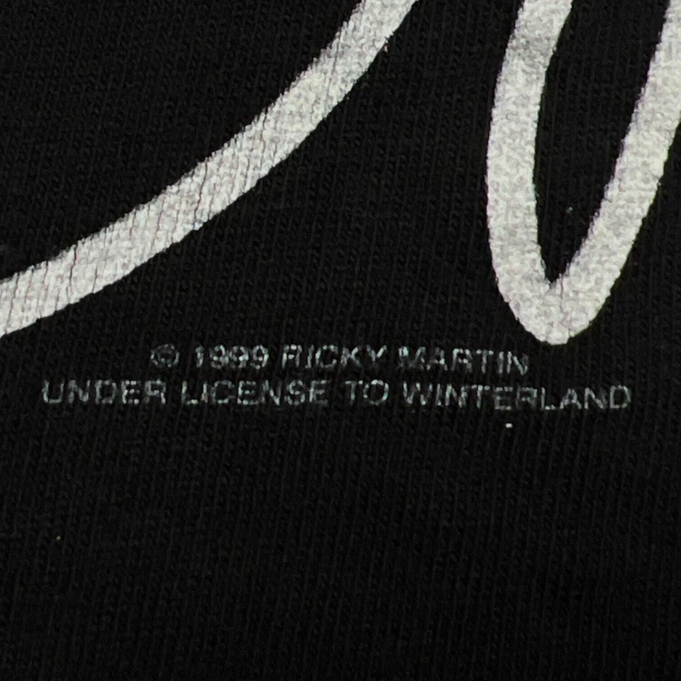 Show your love for Latin pop icon Ricky Martin with this vintage black graphic T-shirt, featuring bold portrait prints and his signature design. Perfect for fans and collectors alike.