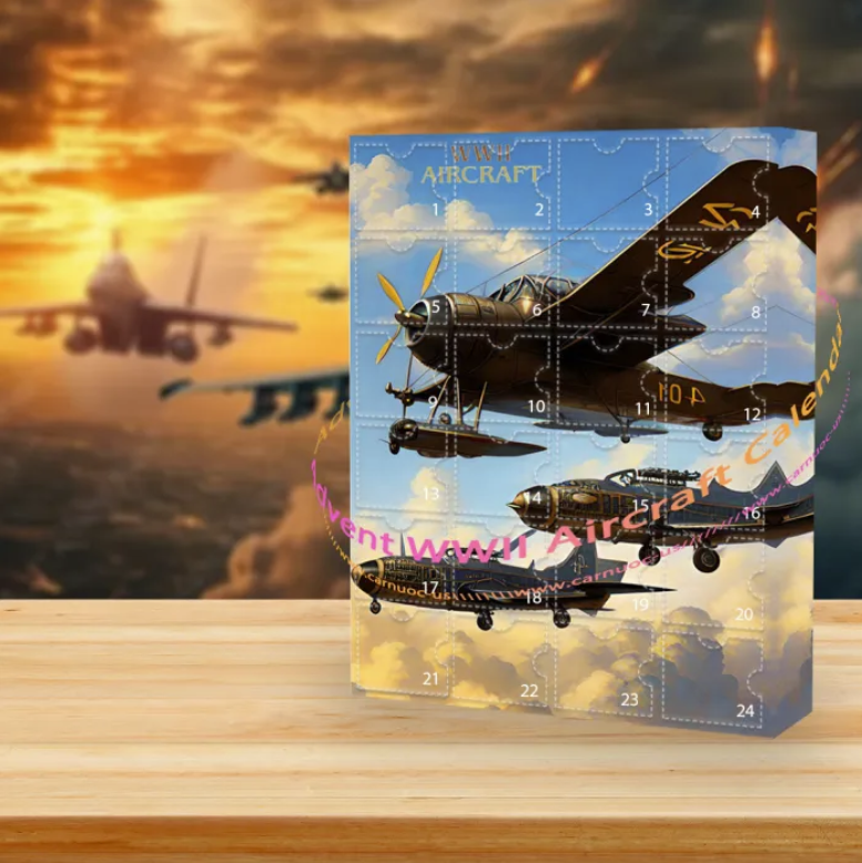 Take a journey back in time and relive the golden age of aviation with the World War II Aircraft 24-Day Advent Calendar – Historical Collector’s Edition. Each day reveals a unique surprise, from detailed WWII aircraft ornaments to miniature souvenirs that capture the bravery, innovation, and history of the era.